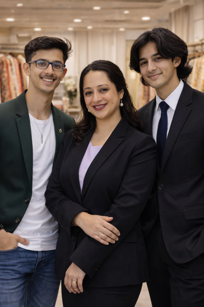 Aryan and Arjun personally ensure that each garment meets global benchmarks — while Sonu Kulkarni’s eye for elegance ensures that every piece carries soul.