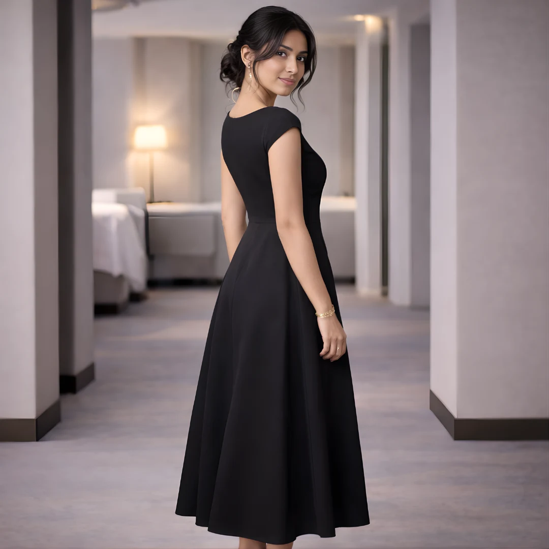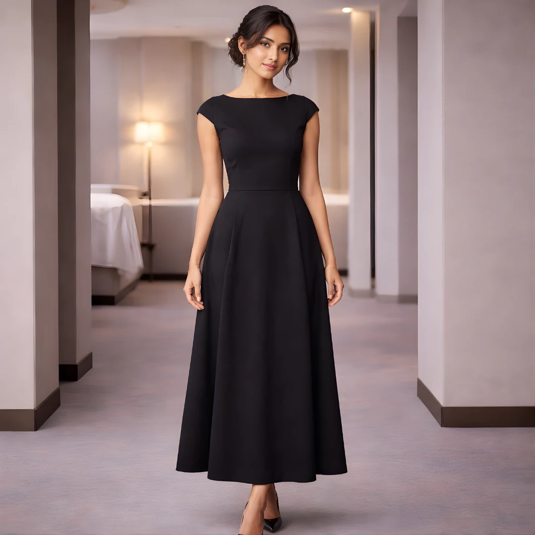 Step into timeless elegance with this Black Elegant One Piece Maxi Dress. Designed with a structured bodice and flowing skirt, this dress offers a flattering fit for every body type. The minimal yet classy design makes it perfect for formal occasions, evening parties, office wear, and special events. Crafted from soft, breathable fabric, this one piece dress ensures comfort while delivering a sophisticated look.