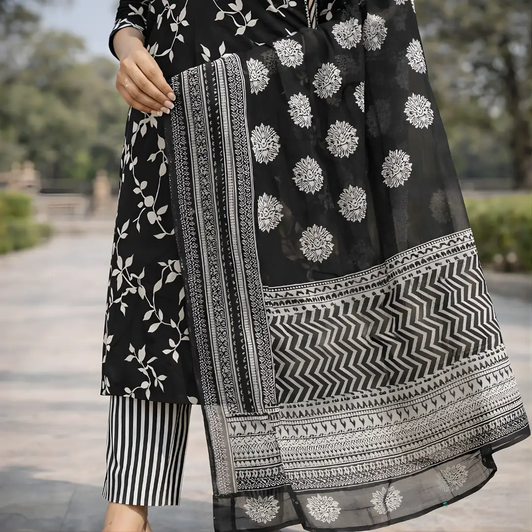 Black Printed Salwar Suit for Women with Dupatta – Elegant Festive Ethnic Wear