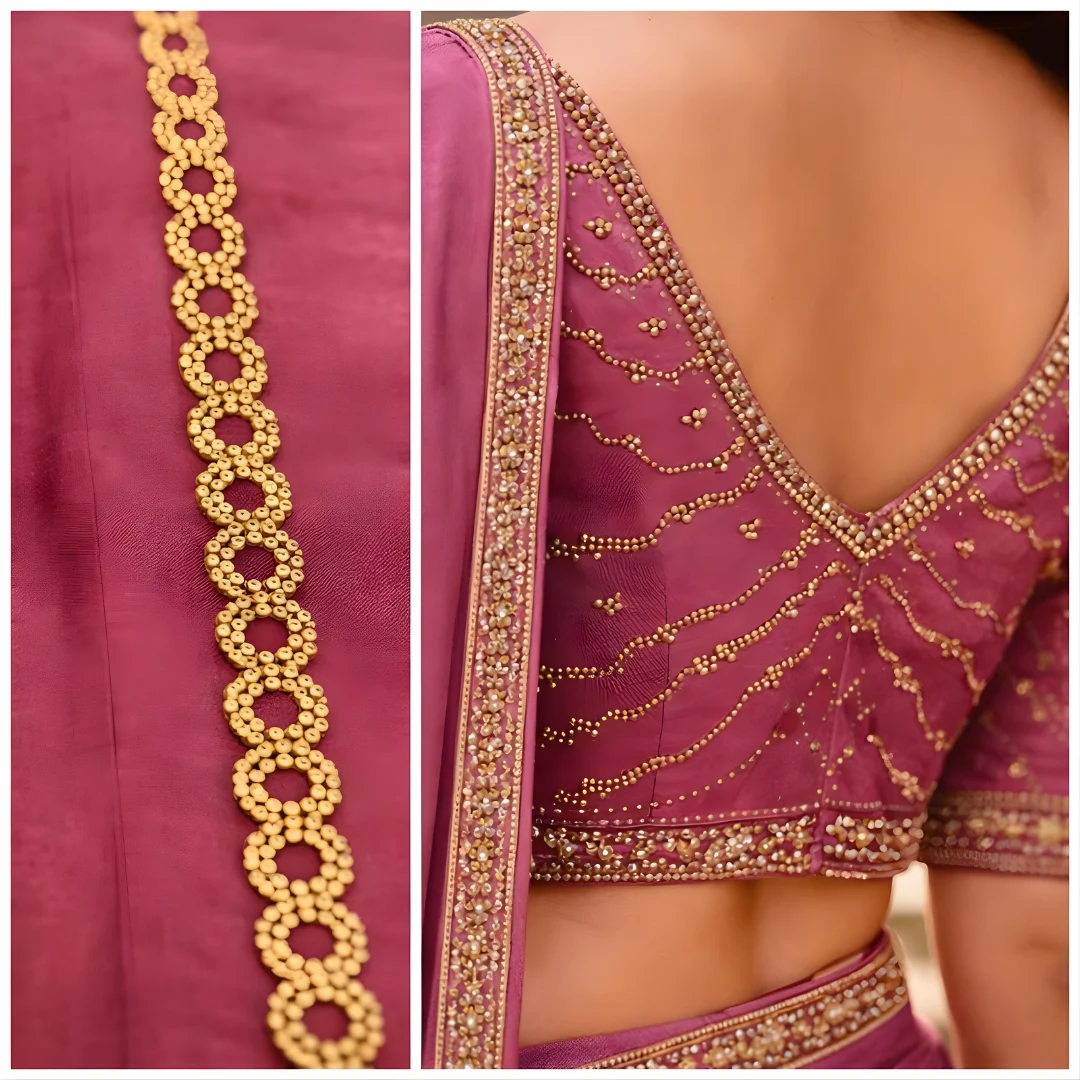 The matching blouse is beautifully designed with handcrafted embroidery, enhancing the overall appeal from every angle. Its graceful drape, rich color tone, and detailed craftsmanship make it an ideal choice for weddings, festive celebrations, receptions, and cultural events.